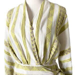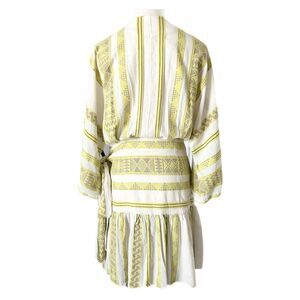 Devotion Twins Belted Mini Wrap Dress Brown Lime Green Off White Size Small