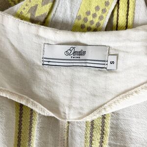 Anthropologie Devotion Twins Belted Mini Wrap Dress in Brown Lime Green Off-White. Good used condition with light mark on skirt. Size Small.
