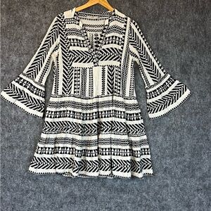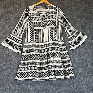 Devotion Twins Ella Embroidered Dress Size S Black and off-white Graphic Print