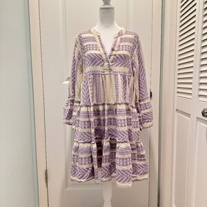 Devotion Twins Embroidered Ella Dress Tunic Tiered Cotton Lilac Size M