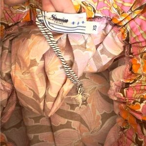 Crafted from a blend of cotton and polyester, this pull-on skirt features beautiful Peach Orange Light Green Hues and has a 35" length.
