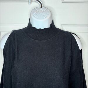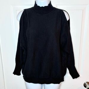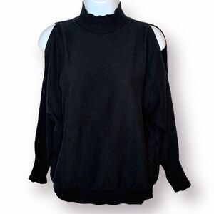 Devotion by Cyrus Dolman Cold Shoulder Black Sweater Mockneck Ribbed Trim M