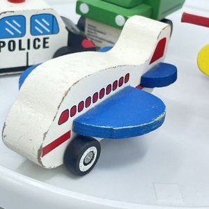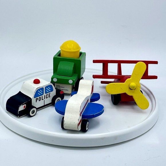 Devrian Global Industries 4 Piece Wood Toy Set Police Car Biplane Jet Dump Truck