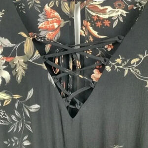 Dex | Black Floral Lace Up Floral Goth Garden Midi Dress Plus Size 3X NWT