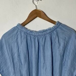 Dex Chambray Dress 3X Short Sleeve Western Cowgirl Ruffle Raw Hem Neckline Soft