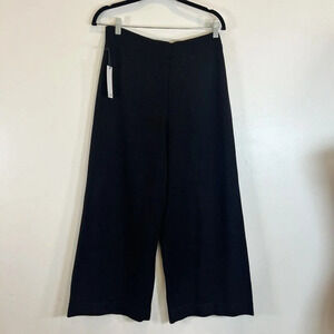 Dex Clothing NWT Black Ribbed Wide Leg Hi Rise Cropped Pants Heavy Knit Black L