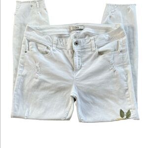 Dex Distressed White Embroidered Floral Design Crop Jeans Size 30