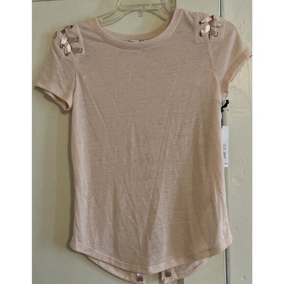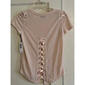 Dex Juniors Women’s Pink Icing Lace-Up Poly-Linen Blend T-Shirt Top Size XS