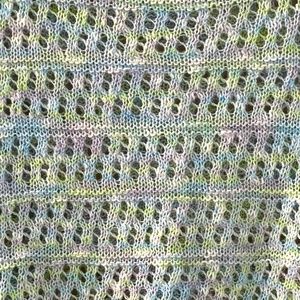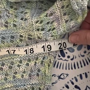 A beautiful lightweight knit sweater that goes perfectly over a tank top. Gently used. Size medium. Length 24", pit to pit 19.5", bottom hem 14.5" (stretches to 18").