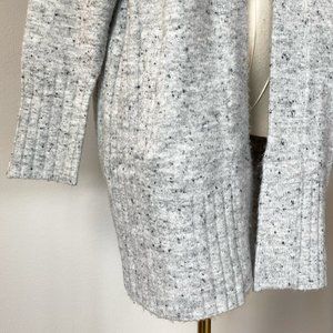 Fabulous speckled grey Dex open front cardigan! Only worn a few times, and is in amazing condition. This high quality, gorgeous sweater is so cozy and is such a versatile piece. Perfect for the office, wfh, lounging, running errands, as a light jacket in the fall–its so good!! Elevate your closet with this beautiful basic, you really can't go wrong with a go to cardigan. Fits beautifully and is an XS, could also be worn as S.