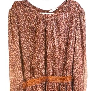 Dex Plus Metallic Mahogany Floral Chiffon Midi Dress Long Sleeve Lined NWT Sz 3X