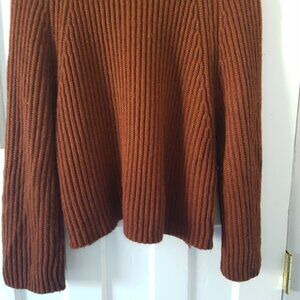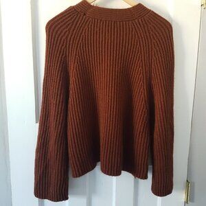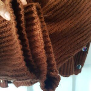 Dex Rib Knit Long Sleeve Crewneck Sweater Gold Button Detail Toffee Brown Sz S
