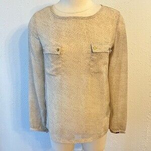 Dex Sheer Beige Animal Print Long Sleeve Blouse Small