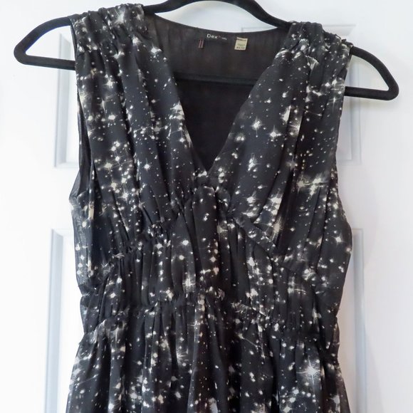 Dex Black White Space Print Fit Flare High Low Sleeveless V-Neck Dress in great condition.