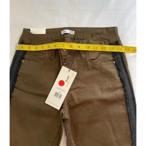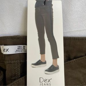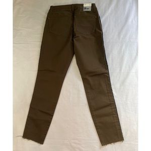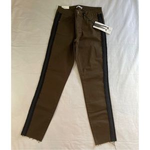 Dex Super Skinny Ankle Black Side Fringed Tape Jeans , Mid- Rise , Ankle Length, Súper Stretchy, 98% Cotton and 2% Spandex, Color Olive Green , Closure Zip and Botton