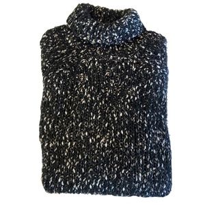 Long Turtle Neck Sweater Tunic in a Black and White Chunky Knit with Side Slits.