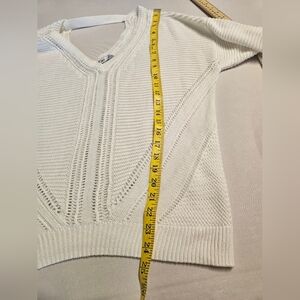 Dex/ SweaterWomen's S White V-Neck Knit Crochet