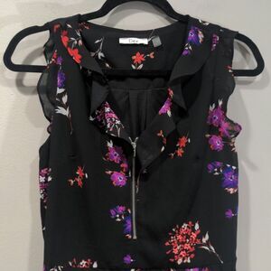 Dex Womens Floral Romper Size XS Black Sleeveless Ruffle Occasion Party