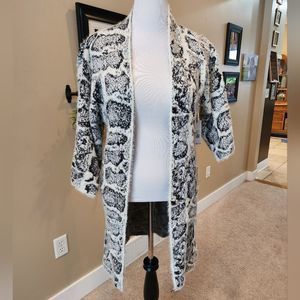 Open front cardigan / kimono / duster. Textured design, silky feel.