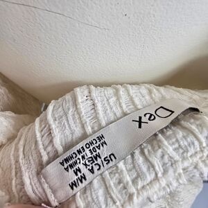 Chic cream blouse with yellow crochet detail. Flared sleeves add elegance.