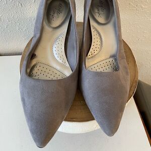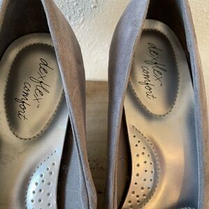 Dex Flex Comfort Hray Suede Style Heels Size 7 EUC