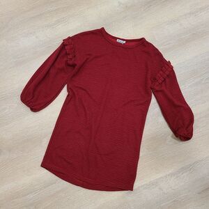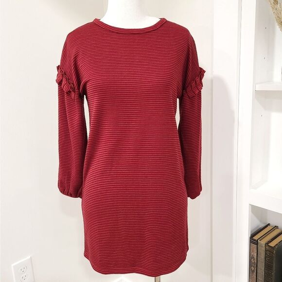 •Brand new with tags! •Dex red striped tunic •Ruffle shoulder with slight puff sleeve •Size Medium B7