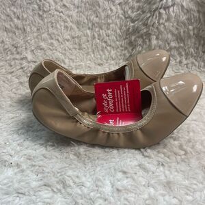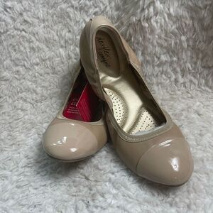 Dexflex Comfort Beige synthetic leather slip on flats patent toe& trim SZ13W