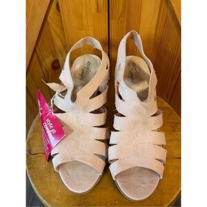 Dexflex Comfort Block Heel Sandals Faux Suede Open Toe NWT Shoes Size 11 Read
