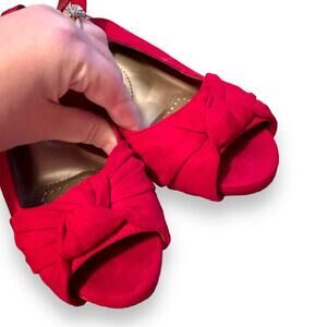 Dexflex Comfort Carmine Red Faux Suede Open toe Slingback Pumps Heels