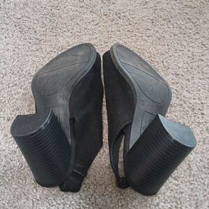 Dexflex Comfort black open toe block heel faux suede heels slingback