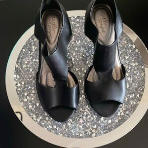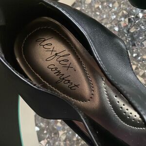 Dex flex comfort cushion soles black cutout stiletto high heels flawed 8.5 wide