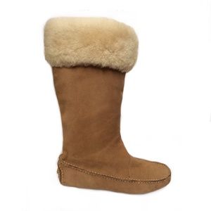 Dexter ladies Vail fur trimmed moccasin suede boots. 100% genuine suede leather upper. Insulated inside.