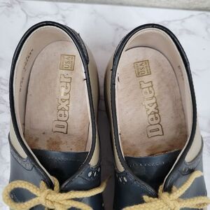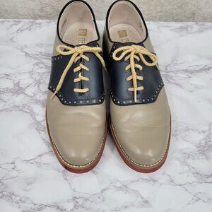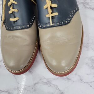 Dexter Vintage Leather Saddle Dress Shoes Oxfords Wing Tip Grayish Taupe Blue