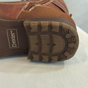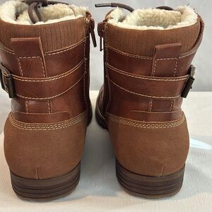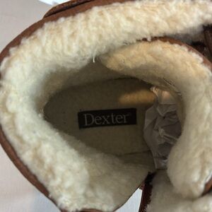 Dexter faux brown leather faux Sherpa lined ankle boots lace up & zip up Size 9