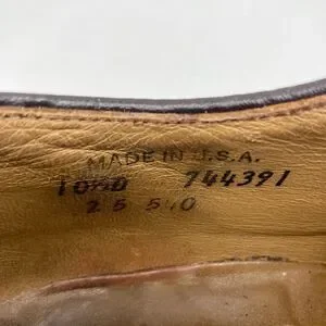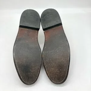 Shoes are in overall great shape with lots of life left and have signs of normal wear, including natural patina and darkening, normal creasing, some minor scuffs and marks to uppers, wear to insole leather, and moderate outsole and heel wear. Includes a pair of dark laces.