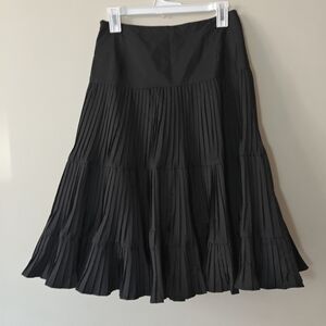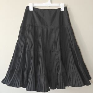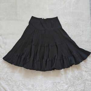 Dexterior Long Midi Skirt Medium Pleated Ruffle Black Flowy