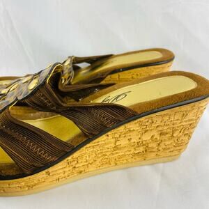 Dezario Leather Animal Print Platform Cork Wedge Sandals - Size 39 / 8.5
