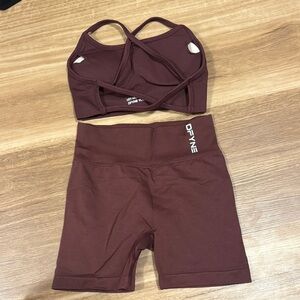 This is the dynamic shorts and sports bra set both in size xs, burgundy color.