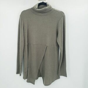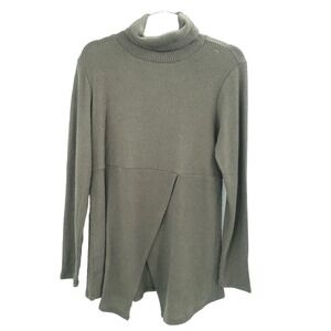 Dg2 Diane Gilman Green Split Front Sweater Womens Medium Turtleneck Rayon Blend