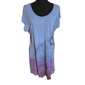 Dharma Trading Company Womens Cotton Short Sleeve Boho Casual Dress Blue Size Large