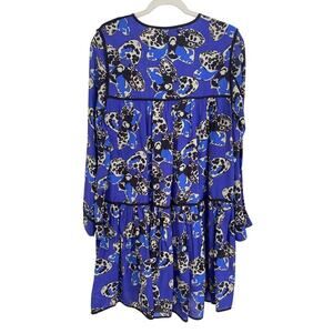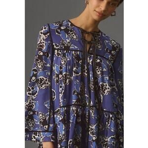 Dhruv Kapoor Long Sleeve Blue Print Babydoll Swing Mini Dress Anthropologie NWT