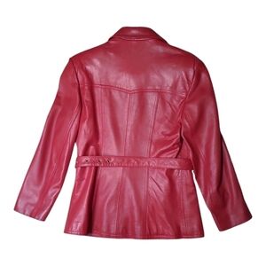 Di Capra International Vintage Red Soft Leather Belted Jacket Women’s Small Petite