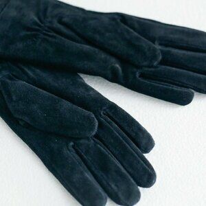 Di Firenze Black Suede Gloves with Laser Cut Detail Scalloped Edge S