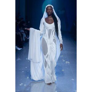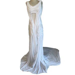 This stunning white Di Petsa water gown is perfect for your special day. Its elegant design ensures you stand out beautifully. Sold out on all official outlet websites. Only available on official brand website for custom order (30 day wait)