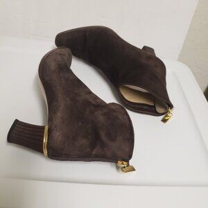 Di Sandro suede booties size 7 (37.5) gold trim zipper, made in Italy, brown Condition nice no stains or scruffs, gold zipper and trim see pictures, beautiful Italy made heeled boot booties golden gold trim and zipper in back