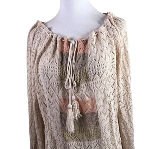 DiCosta Vintage Sweater Beige Peach Knit Drawstring Waist 70s Boho Size 14