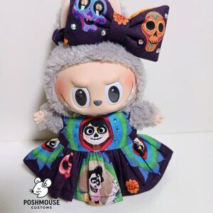 Dia De Los Muertos Disney Coco Miguel Dress and Skull Bow for Labubu