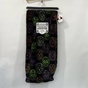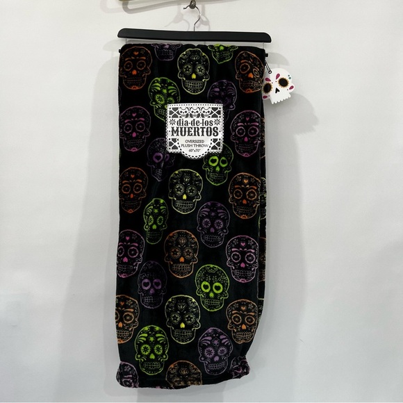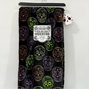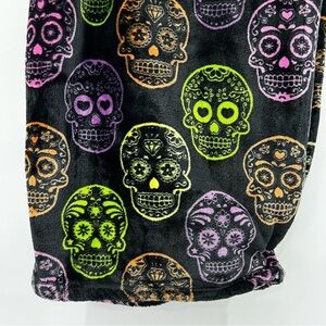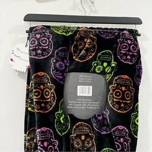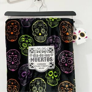 New, Dia De Los Muertos Oversized Plush Throw Blanket 60"X70" Black Multicolor Skull.