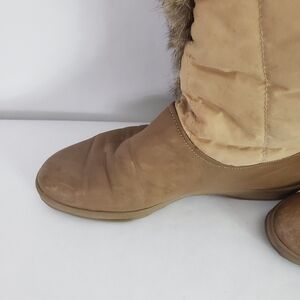 Unique boot in tan quilted nylon with leather foot and real fur trim
