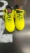Vibrant neon yellow Adidas sneakers with striking black and red details. Eye-catching design.